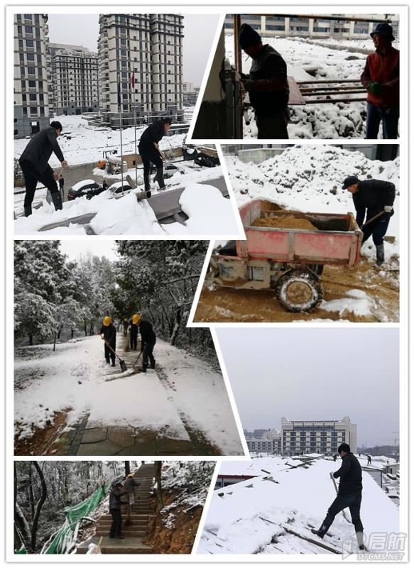 雪持續不斷的下,為了確保現場施工及人生安全。施工人員紛紛行動起來,他們拿起掃雪的工具,主動的投入到清雪的活動中。將積雪壓實的地方就用鐵鍬一點點的鏟除,一點點將雪清掃干凈。很快路面又恢復了昔日的潔凈。為安全的出行和生活條件提供便捷,我們相信寒潮雖冷,心間卻暖。